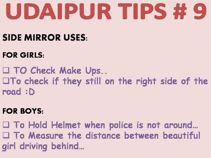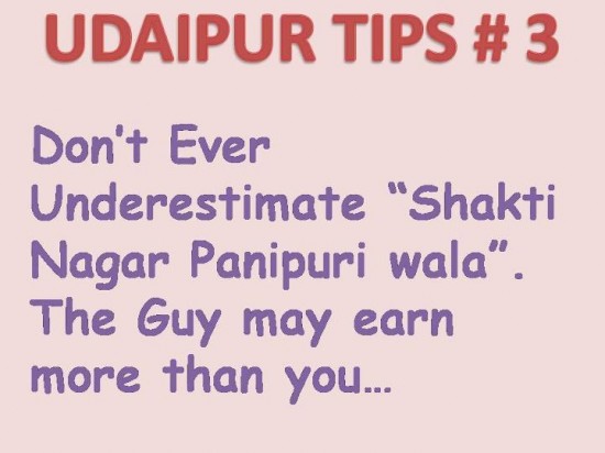 Surfing over Facebook we found I new amazing page of Udaipur – Udaipur Tips .. 😀 Sharing interesting tips, humorous quotes, one liners related to Udaipur… !! This concept of sharing tips and funny things about the city is nowdays in trend in various cities. But now our very own Udaipur got such pages.. So here we bring you the list of interesting 13 tips of Udaipur shared by the Page : Udaipur TIPS … !! The page is owned by : Purva Baxi