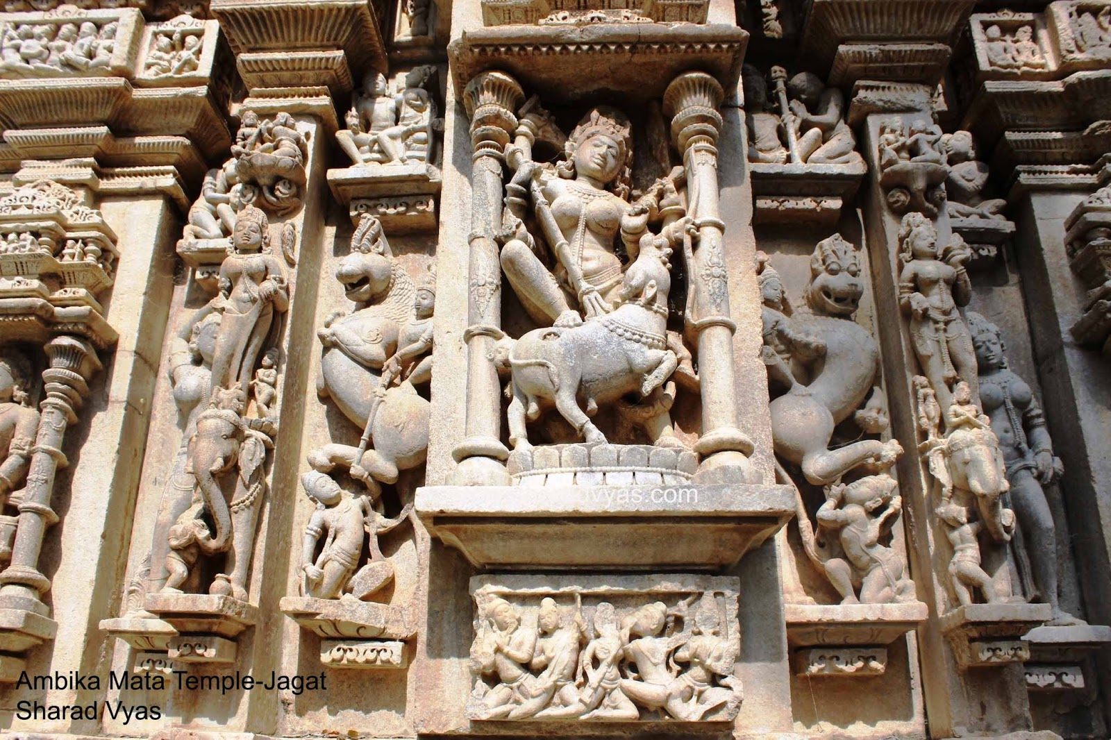 At a distance of around 50 km from Udaipur, rests a rarely known gem of a temple which is known as Ambika Mata temple. The village named Jagat houses the architectural temple. Ambika Devi, who is the form of Goddess Durga is the chief deity of the temple. Goddess Ambika is worshipped as goddess Shakti is believed to be the primordial source of energy. She is associated with Durga through her lion mount and is connected to the Jains when a vision from the temple advised Vimal Shah, a minister of the Chalukya King of Gujarat, Bhimdev I, about building a temple of Lord Adinath at Dilwara, Mount Abu.