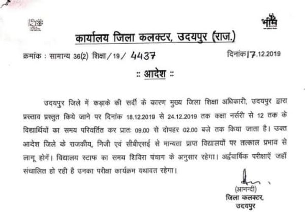 As the cold wave intensifies in the state, dropping the temperature further, the District Administration has instructed all the private and government school to begin their classes only after 9 AM. According to the notice, the schools will have to follow the guidelines till December 24