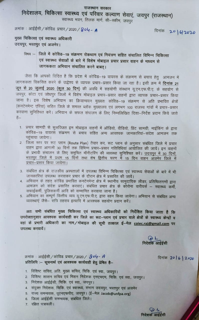 अभियान का जिला स्तरीय शुभारंभ 21 जून प्रातः 10 बजे होगा। अभियान के तहत, इलेक्ट्रोनिक मीडिया, आउटडोर मीडिया, ओपीडी मोबाइल वैन, वॉल पेंटिंग, माईकिंग, पैम्फलेट्स, एलईडी डिस्प्ले, सोशल और डिजिटल मीडिया, होलोग्राफिक डिस्प्ले के माध्यम से लोगों को जागरूक किया जाएगा।