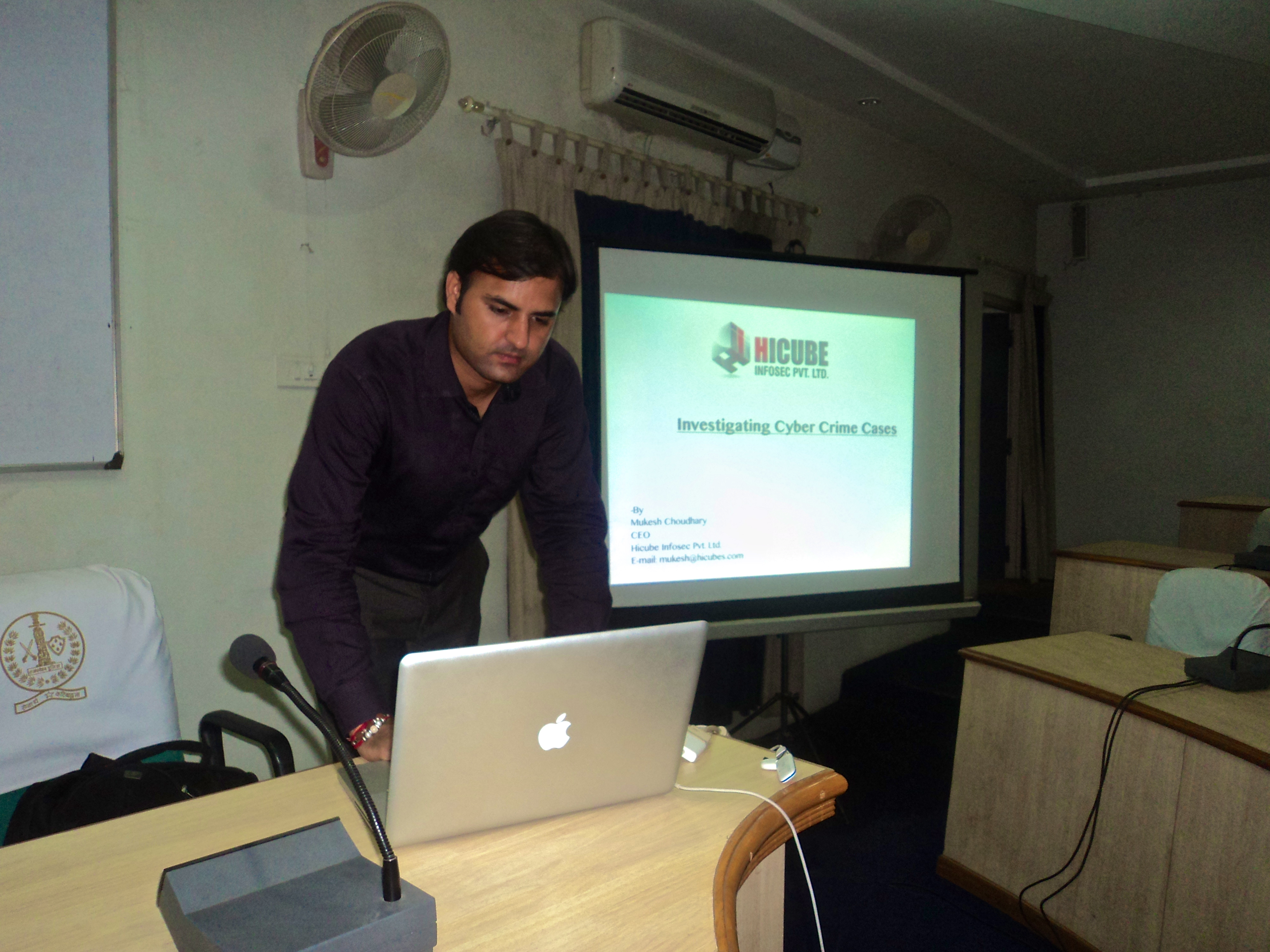 Hicube Infosec Pvt. Ltd. An initiative of Mr. Mukesh Chaudhary is a positive step towards this direction of managing and securing web network and cyber-crime investigation and it provides qualitative training. He is an active speaker at Rajasthan Police Academy, providing trainings on Cyber Crime Investigations. He provided training on Cyber Crime Investigations conducted by Bureau of Police Research and Development.