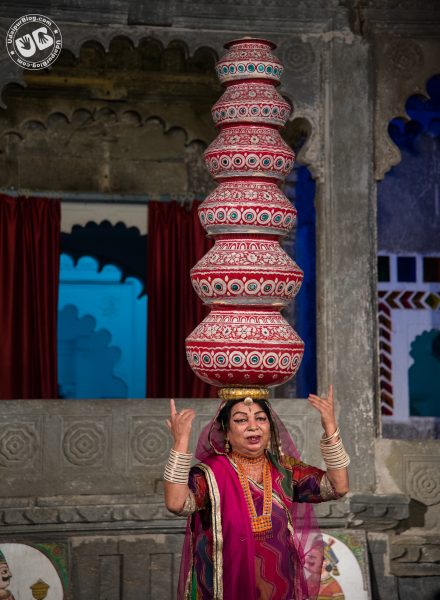 This dance represents the enjoyment of Rajasthani women when she gets water in a desert after walking so long keeping so many vessels on her head. Artist also dances on the sharp edge of a metal plate and broken glasses.