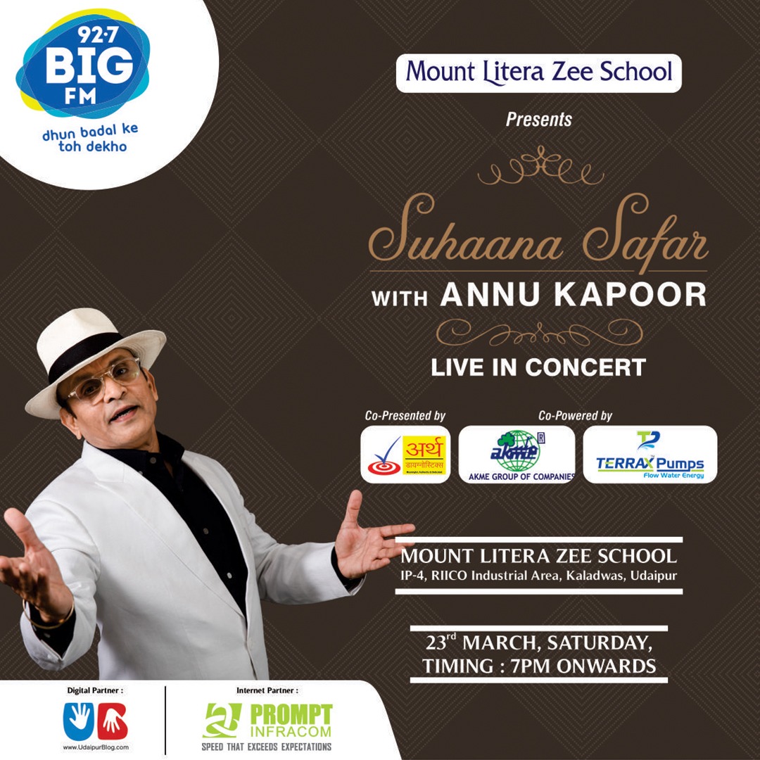 The renowned talk show is going to be organized in our very own Lakecity on 23Rd March 2019 at the Mount Litera Zee School. The show will commence from 7 PM onwards.