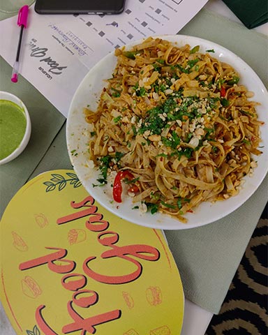 Next we drove to The Bungalow, a multi-cuisine restaurant located near Sukhadia Circle. The much-needed warmth due to the rainy season was provided, not only by the place’s ambiance but also the service and humbleness of the staff. Upon arrival, we were greeted with a welcome drink. After a small introduction about the place and its history, the food was served. The fusion of different cuisines definitely caught our attention but the Veg Pad Thai Noodles, in particular, stole our hearts.
