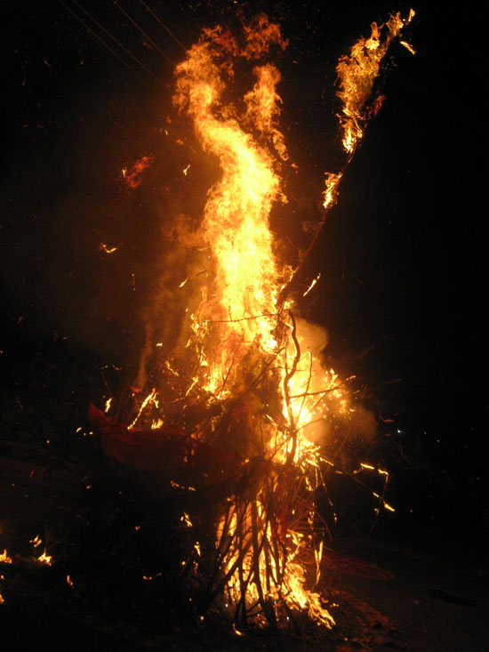 Hindus celebrate this in a religious manner as Holika dahan, also popularly called as chhoti holi. The popular tradition is to celebrate with lighting of bonfires on the street corners, people gathering around it, offering of the first Rabi crop to the sacrificing fire with chanting of mantras and shlokas. Everyone rejoice the moments with singing and dancing.