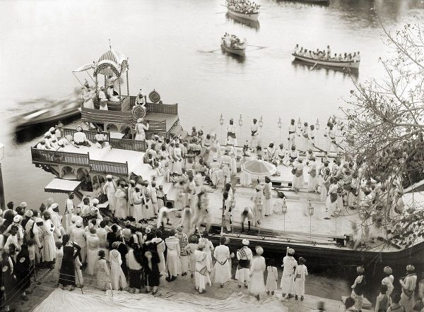 महाराणा के पीछे दूसरे सरदार, जागीरदार, पासवान व जंगी सैनिक रहते है और सबसे पीछे हाथी चलते है। सवारी के दोनों तरफ छड़ीदारो की बुलंद आवाज़ और आगे वीरता के दोहो का गायन करने वाले ढोलियो की आवाजें सवारी के आनंद को दोगुना कर देती है। इसी ठाठ बाट के साथ महाराणा धीरे-धीरे त्रिपोलिया घाट पर पहुंचते हैं और वह घोड़े से उतर कर नाव पर सवार होते हैं। इनमें से एक नाव के ऊँचे गोखड़े पर लगभग दो फुट ऊंचा सिंहासन रहता है, उस पर चार खम्बों वाली लकड़ी की एक छतरी होती है। सिंहासन और छतरी ज़र्दोजी और ज़री से सुशोभित होती है। सिंहासन के चारो तरफ, नीचे के तख्तो पर शानदार पोशाकों व गहनों से सज्जित सरदार, चारण व पासवान अपने दर्जे के मुताबिक बैठते है और कितने ही अन्य लोग आसपास खड़े रहते है। महाराणा के पद के नीचे के सभ्यगण उसी के समीप जुड़ी हुई नाव में सवार होते है। नाव की सवारी धीरे-धीरे दक्षिण की तरफ बढ़ती है और बड़ी पाल तक जाने के बाद फिर लौट कर त्रिपोलिया घाट पर आती है। दक्षिण के तरफ बढ़ते हुए आतिशबाज़ी चलाने का हुक्म दिया जाता है, तालाब के किनारों तथा कश्तियो पर से तरह-तरह की रंग-बिरंगी आतिशबाज़िया होती है। ये सब देखने में बहुत आनंद आता है।