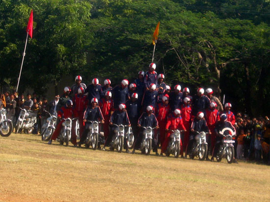 On 15th of January 2010, Udaipur witnessed an amazing and heart-throbbing event which took place at the Railway Training College Ground. The ground was full with crowd, and the city witnessed first of its kind bike stunt show by the Indian Daredevils on account of celebration for the National Youth Festival. Every witness wowed on every move of our Indian Army men who were just doing miracles on their bullet motorbikes.