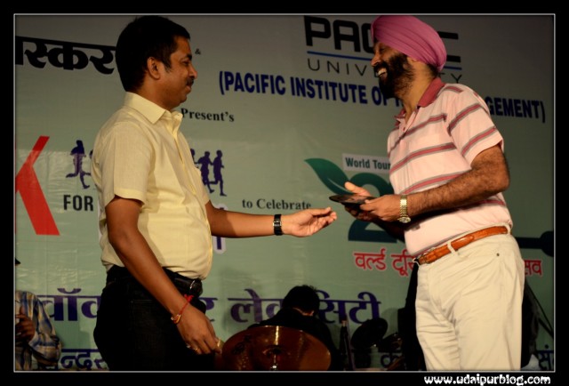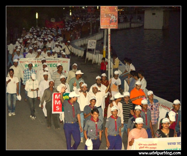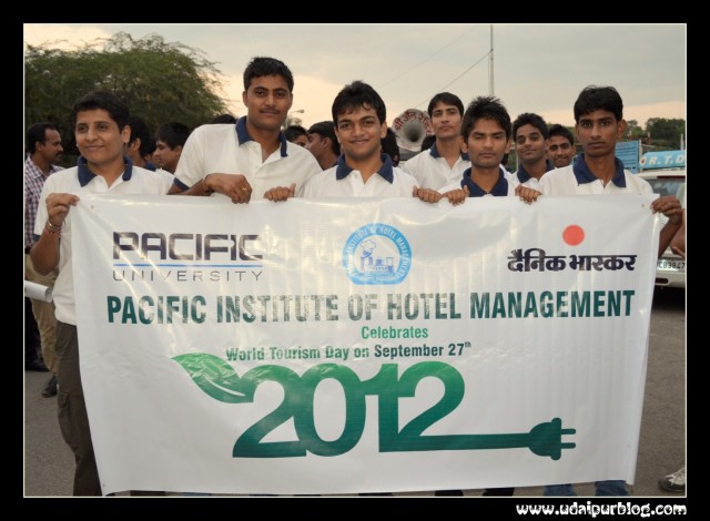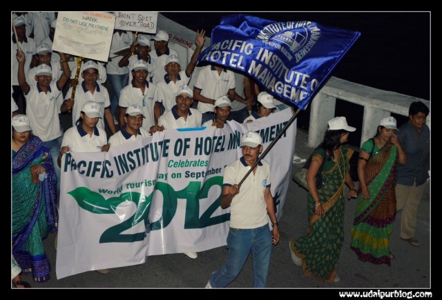 With two Big resolutions of making the Lakecity Clean and Green & to make Udaipur a Smoke Free City, a rally “walk for lakecity” was organized by Dainik Bhaskar & Pacific University [Hotel Management Institute] on 27th September, World Tourism Day to Promote Brand Udaipur. This rally started from Motimagri, wherein many big personalities like Rajni Dangi, mayor of udaipur, Mr.Hemant Gera, Collector , Mr.Sudhir Mishra, Executive Director, Bhaskar Udaipur, Mr. Ajeet V. Jhony [Unit head], Dr.Parul Mathur, director of hotel management PU, Mr.Ashwini Nayar, GM Sheraton, Mr. Harish Rajani, Sunrise joined. The girls from RMV also accompanied this cause. Many clubs supported this walk. The walk ended with Folk Dance performances and Paper Bag Distribution.