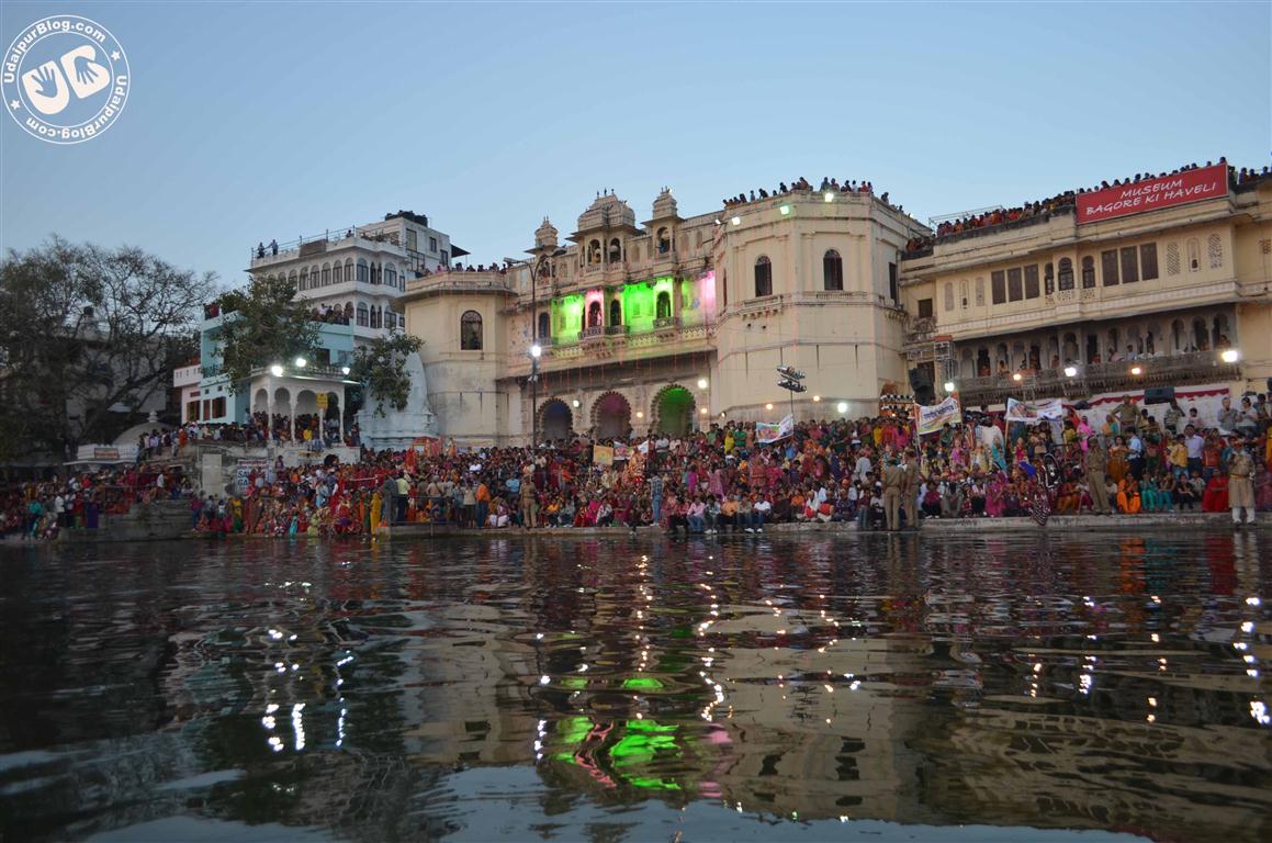 The celebration started with a procession, in which women carried the idols of Isar and Gangaur all the way from Clock Tower to the Gangaur Ghat. Then the Royal boat of Palace was taken out from Bansi Ghat to Gangaur Ghat which was the centre of attraction of the evening. Colorful boat in the glowing water of Pichola was truly worth watching. Then the artists showed various shades of culture in the cultural programme that followed.The Show started by the performance of renowned Maand Singer of Udaipur – “Maangi bai”; Tune of ‘Padharo Mahare Desh’ filled the air and traditional dance forms like ‘Ghoomar’ and ‘Kalbeliya’ took hold of the breath. On the whole, the whole festival served as an eye candy with its striking colors and glorious culture.