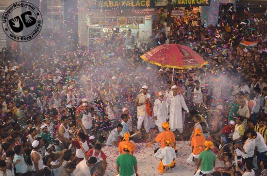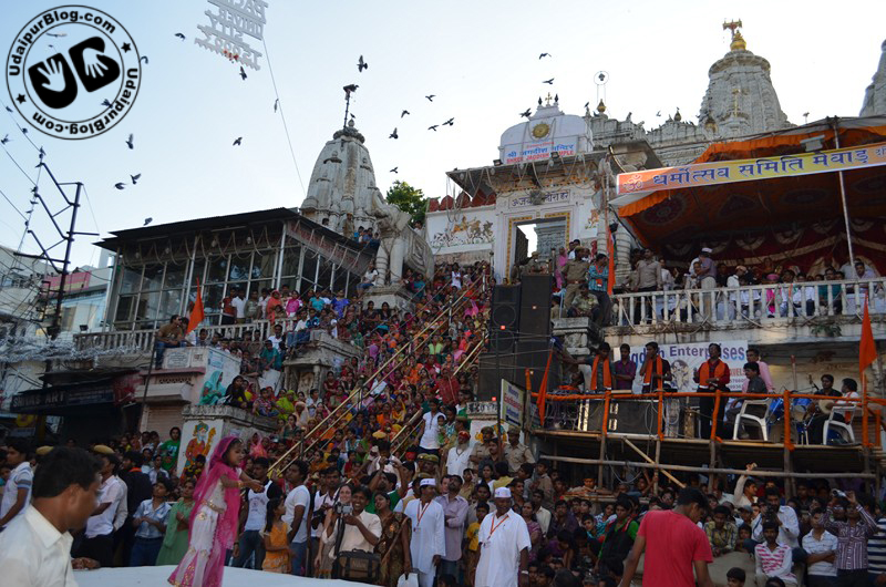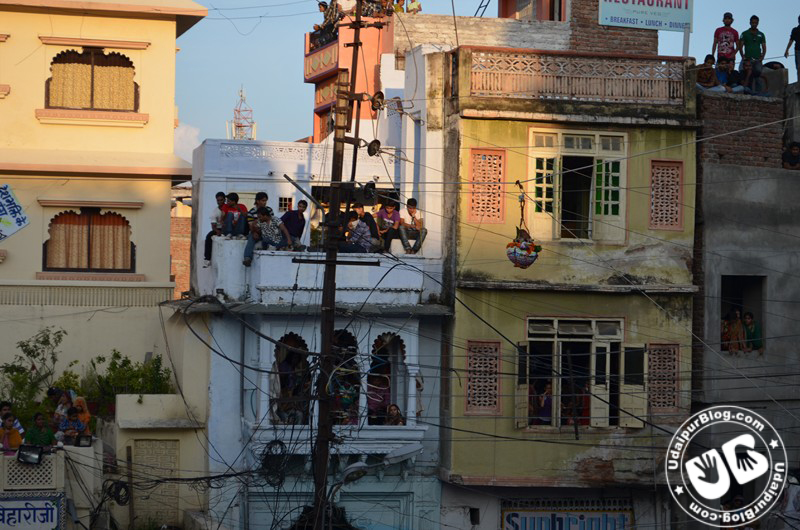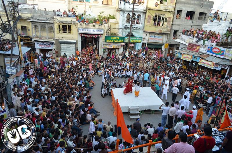 The Dahi Handi event at jagdish chowk has become a prolonged custom; the janmashtami celebration is accompanied with colorful cultural activities where many localities and foreign tourists take active participation. These activities include cultural dance, singing performances which ends with the Dadhika Matki Phod. The special attaraction here at the jagdish chowk is the performances by the tourists across the globe who sing and perform on Rajasthani Songs.