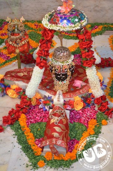 Janmashtmi Celebration at Sector 11 machla magra Udaipur at Triyambakeshar Mahadev Temple included Amazing Shringar and beautiful tableau(jhanki) of Lord Krishna; Bhajan mandli continued till midnight and celebrated Birthday of Lord Krishna.