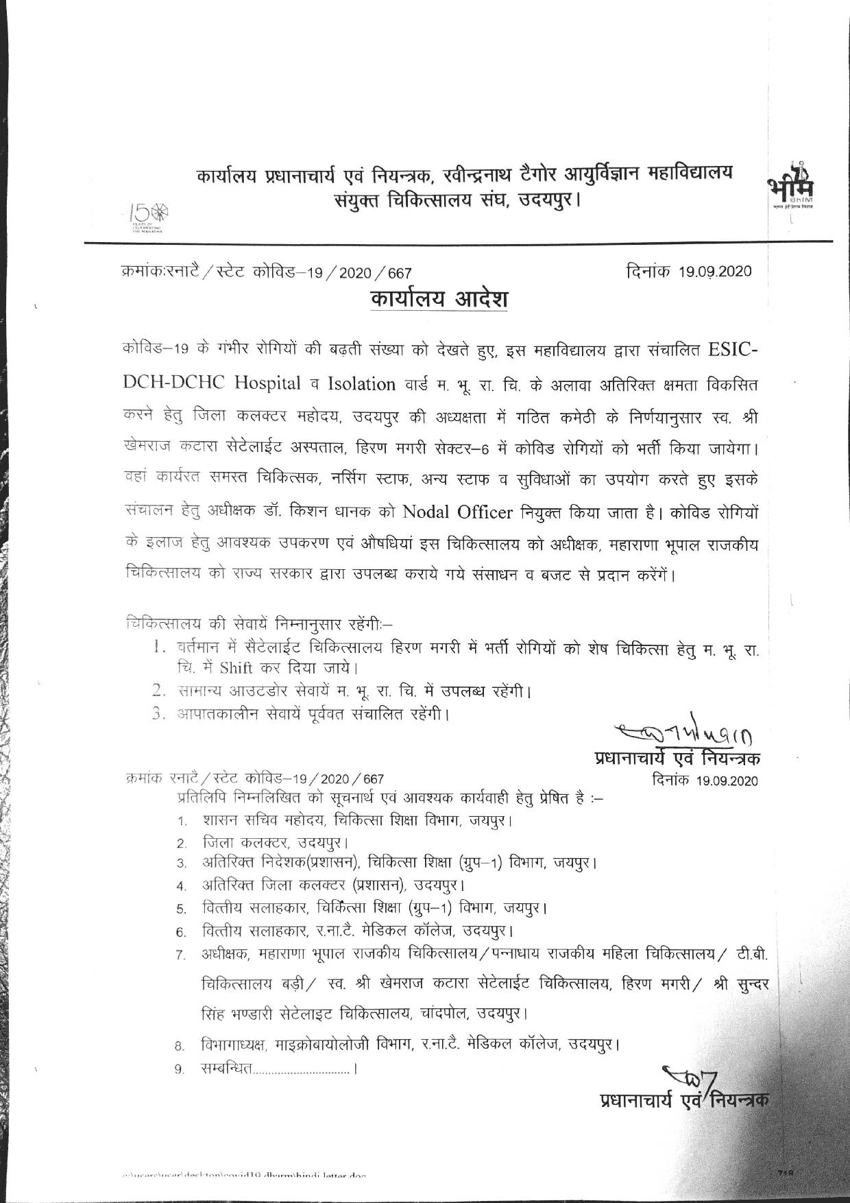 - खेमराज कटारा सेटेलाइट हॉस्पिटल (हिरण मगरी, सेक्टर-6) में कोरोना मरीज़ों को किया जायेगा भर्ती।