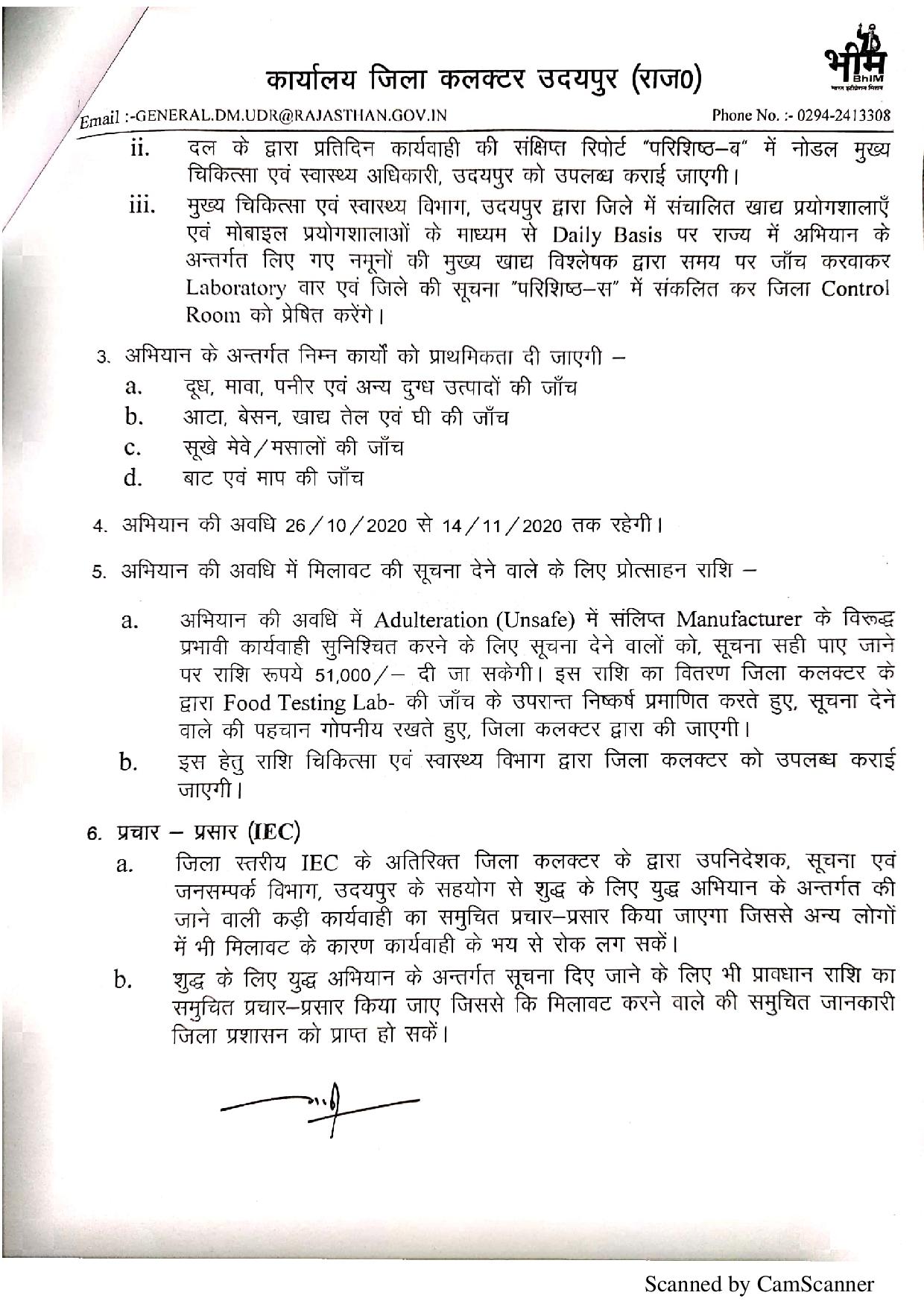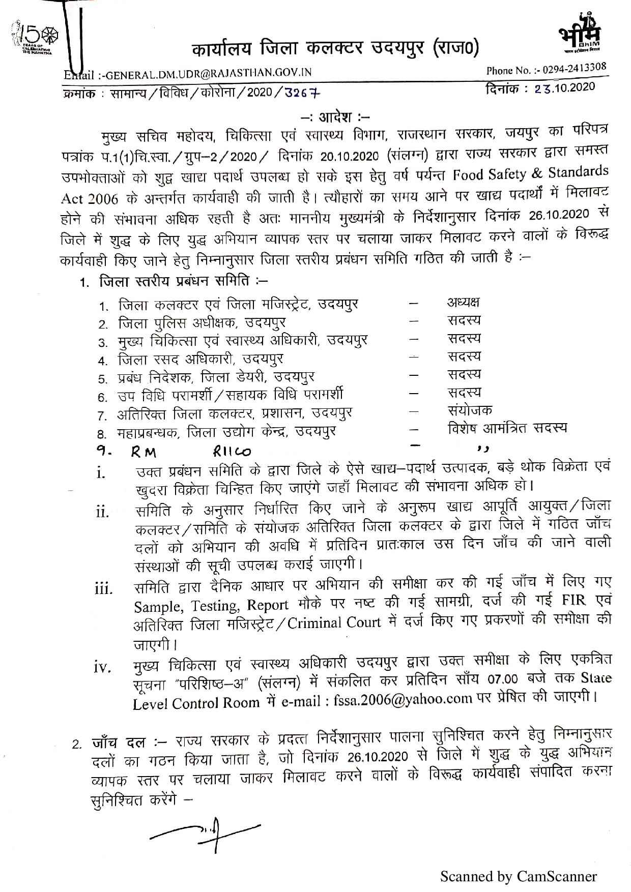 उदयपुर कलेक्टर ने शहर में मावा, पनीर, मिठाई, तेल-घी, मसाले, पेय पदार्थ आदि की जांच और कार्रवाई शुरू करवा दी है।
