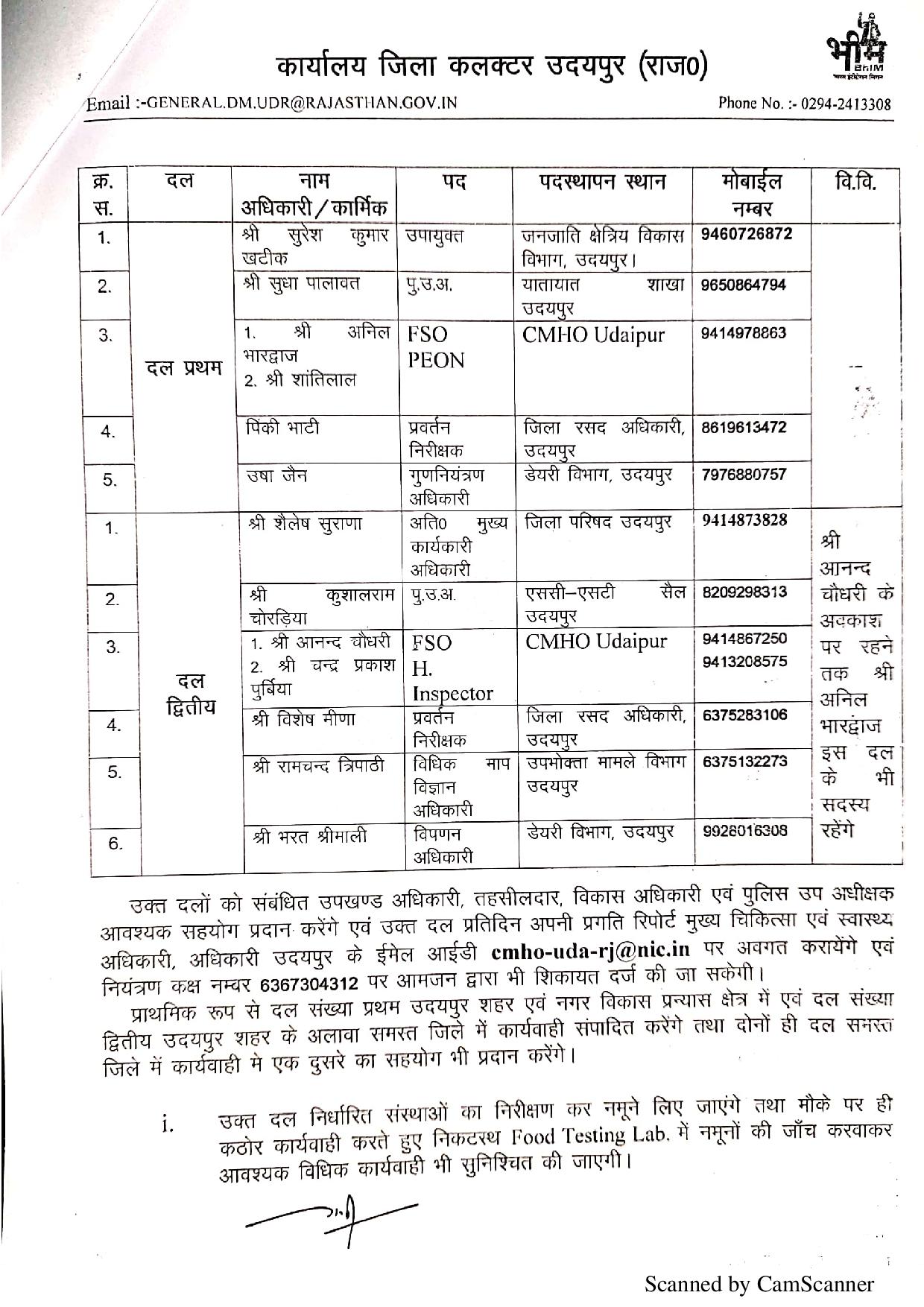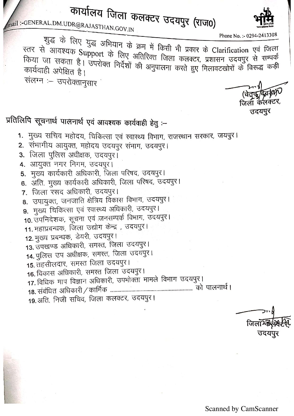 इसके लिए कलेक्टर ने संबंधित उपखण्ड अधिकारी, तहसीलदार, विकास अधिकारी व पुलिस उप अधीक्षकों को जांच दलों को अपेक्षित सहयोग देने के निर्देश दिए हैं। जाँच दल अपनी रिपोर्ट सीएमएचओ को ईमेल से भेजेंगे।