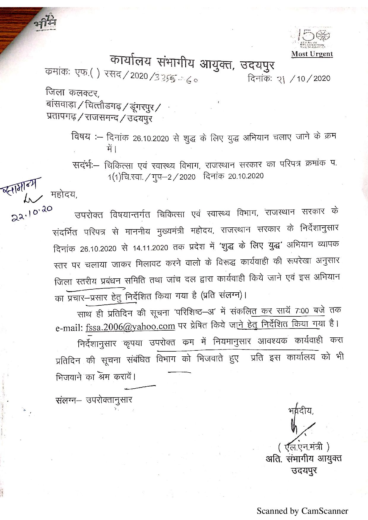 • ‘शुद्ध के लिए युद्ध अभियान’ 26 अक्टूबर से 14 नवंबर तक।