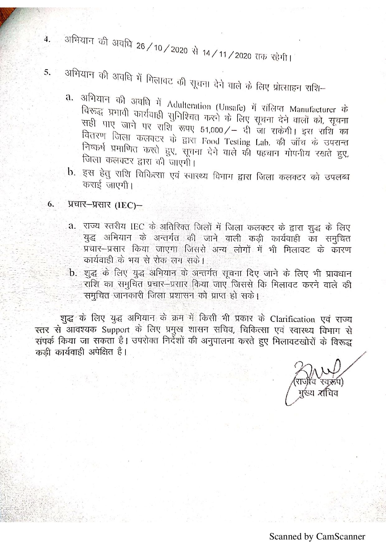 ‘शुद्ध के लिए युद्ध’ अभियान – सूचना देने वालों को 51 हजार प्रोत्साहन राशि