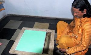 Now talking of the stencils, these used by the Pancholi family are made from thin rice papers and are almost 300 years old. Their forefathers drew on them and cut them. These stencils are preserved by the family and used till date.