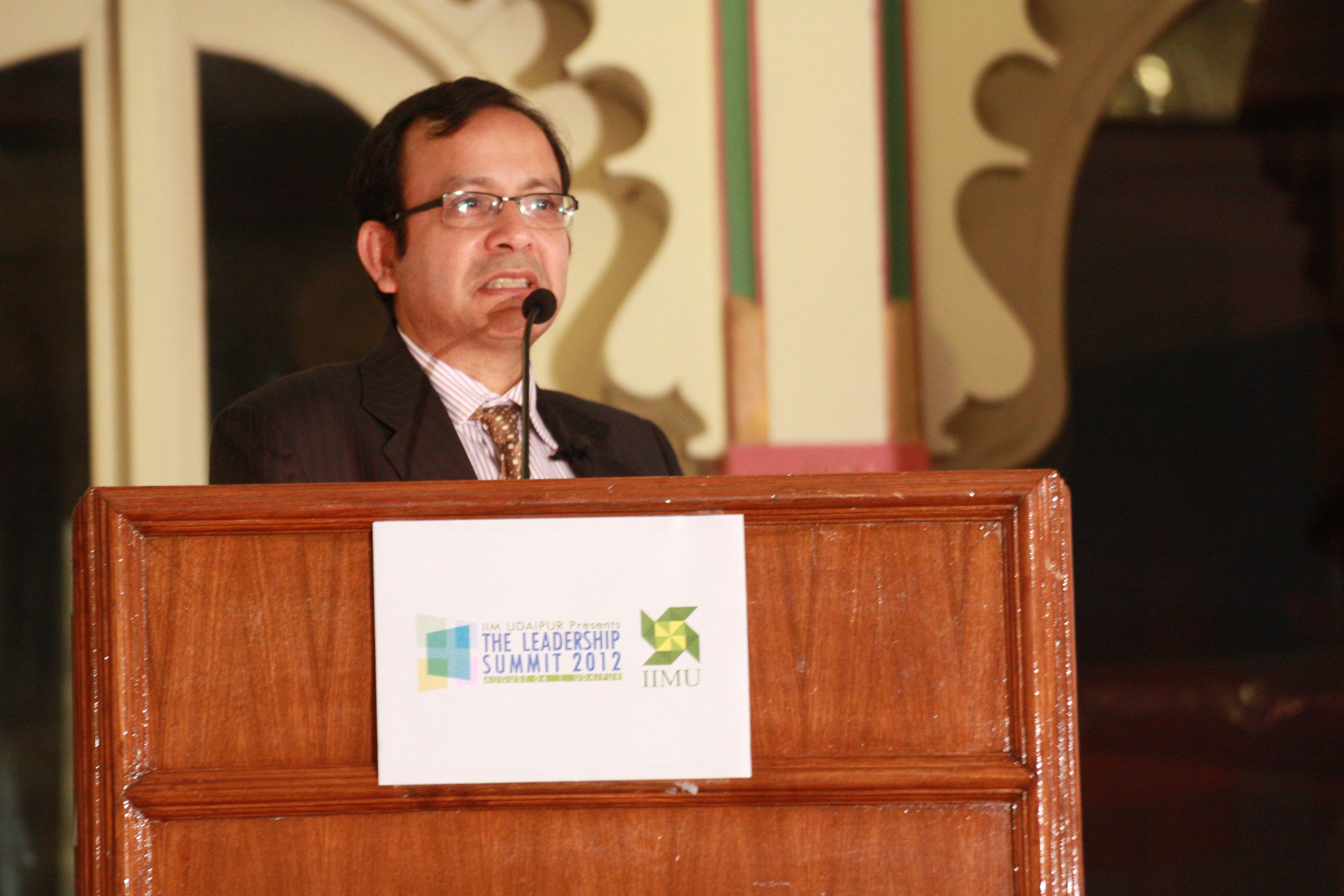 Professor Janat Shah, Director IIMU, initiated the proceedings with a few welcoming words. He talked about development of an organization is a long journey and the key aspects to its success was creating knowledge and an environment for sharing it. He then talked about the PGP-M as a transformation journey and how the participants are encouraged to make a difference to the society and give back to Udaipur. To the organizers, he referred to the event as a leadership execution example wherein the entire event was organized by the students. Maharaj Kumar Lakshyaraj Singhji Mewar addressed the gathering and stressed on the importance of being a good human being, which set the stage for success in everything one does in life.