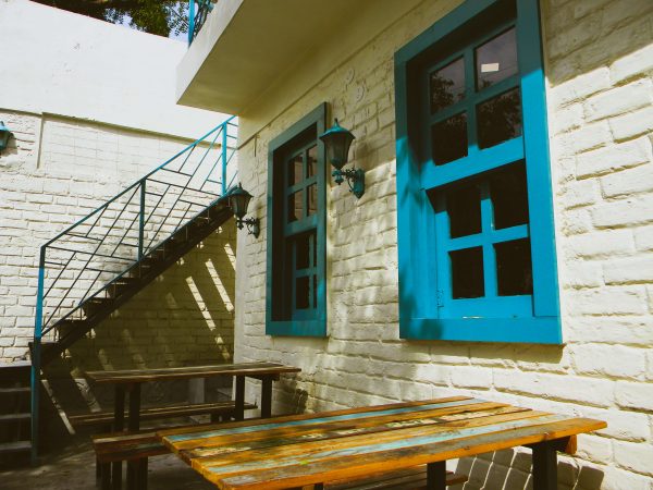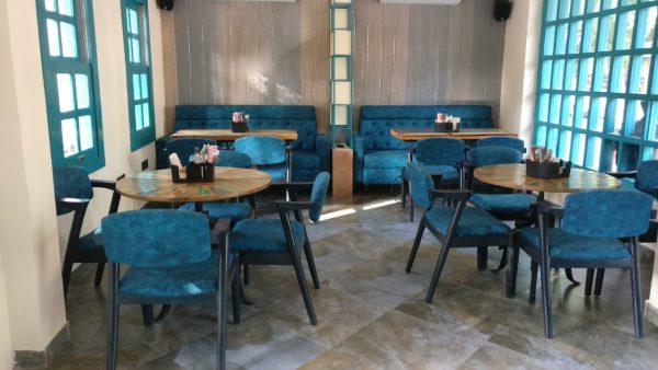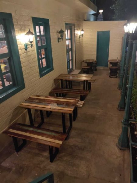- The architects Divya & Shantanu Sharma have designed the café’s interior in a simple yet attractive style. The color theme & the artistic windows remind you of ancient Greek architecture. The Green & subtle elevation of the Bistro resembles an old roadside European eatery. Furniture & majority of the seating is designed from the old antic reclaimed wood. From Swings on the terrace to wooden Benches in the backyard and Sofas to Comfy Chairs inside the covered area, each seating arrangement promises a unique feasting experience every time one visits. The music genre is majorly soft country blending perfectly with the aura of the place. There is ample parking space right across the property along with extended government parking right behind the property.