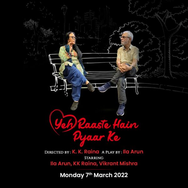थियेटर फेस्टिवल के तीसरे दिन इला अरूण द्वारा लिखित ये रास्ते हैं प्यार के नाटक प्रदर्शित किया जाएगा। इला अरुण लोक और लोक-पॉप संगीत की शैली में एक विश्व स्तरीय नाम है। नाटक का निर्देशन केके रैना ने किया है। इला अरुण ने एक भयंकर महामारी के अनिश्चित समय में दो बुजुर्गों की एक सुंदर कहानी बुनी है, जो अपने खाली जीवन के अलगाव से मुक्त होने के लिए बेताब हैं। स्टार कास्ट में इला अरुण, केके रैना और विक्रांत मिश्रा शामिल हैं।