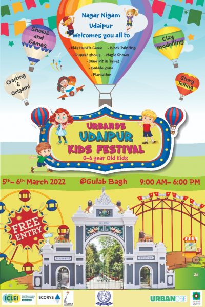 Through the “Urban95 Udaipur Kids’ Festival”, the city is focusing on enhancing early childhood and celebrating it. This annual event is organized by the Udaipur Nagar Nigam, in collaboration with Bernard Ven Leer Foundation (BvLF) with technical support from ICLEI – Local Governments for Sustainability, South Asia and Ecorys India. This year the festival will be celebrated on 5th and 6th of March at Gulab Bagh, Udaipur.