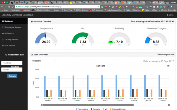 They also installed a data logger to collect all readings of these sensors and also added a solar panel to supply power to the box. They connected this system to IBM Bluemix cloud to store the data on quality of water sent every half an hour by the sensors. They also used IBM Watson to analyse this continuous data to create reports and graphs and created an App called Lake Monitoring System ( available on Google Play Store ) through which anyone in the world can see quality of water in Udaipur lakes on live basis.
