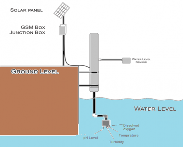 They created a box and installed 4 sensors to measure following four parameters of Water quality “
