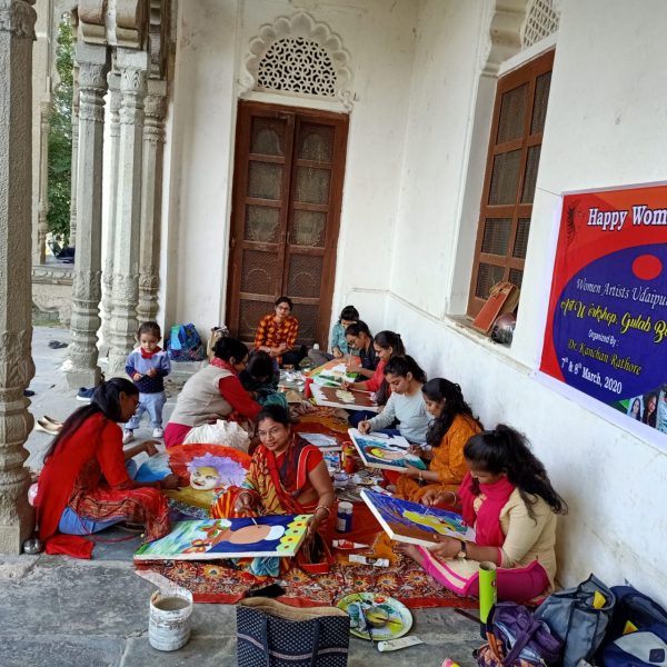 कंचन आर्ट गैलरी के तत्वाधान में निःशुल्क चित्रकला कार्यशाला गुलाब बाग़ स्थित सरस्वती लाइब्रेरी, उदयपुर में महिला कलाकारों द्वारा ‘ज़मीं से आसमान तक की उड़ान’ थीम पर आयोजित दो दिवसीय चित्रकला कार्यशाला में कैनवास पर विभिन्न कार्यक्षेत्र में महिलाओ की महती भूमिका को चरित्र किया है|