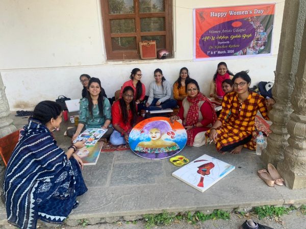 अंतराष्ट्रीय महिला दिवस पर आयोजित चित्रकला कार्यशाला में सभी महिला चित्रकार मीनाक्षी कस्तूरी, नेहा सोनी, चारु जोशी, अनीता माखीजा, उर्मिला मेनारिया, पूजा जोशी, रेखा पालीवाल, डॉ कंचन राठौड़, पंखुड़ी शर्मा, रितिका शक्तावत, हेमलता लोहार, जाया कुम्पावत आदि महिला चित्रकारों ने भाग लिया |
