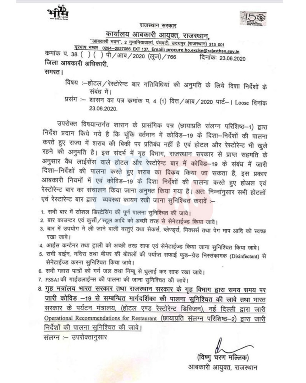 Bars in Rajasthan are one of the most prominent concerns among public. It is one such point where the perspectives of liquor business is majorly focused. Government issues health guidelines for liquor sale in hotels and restaurants.