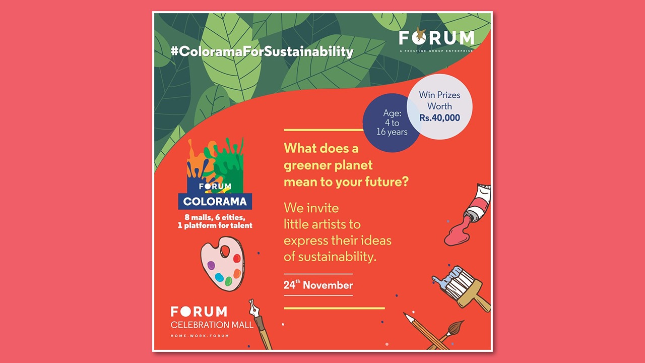 So, Forum Colorama 2019 invites all the kids between 4 to 16 years to express their ideas on sustainability and what does greener planet mean to the future. The event will be held on 24th November 2019 at Forum Celebration Mall, Udaipur. The best ideas will win prizes worth Rs. 40,000.