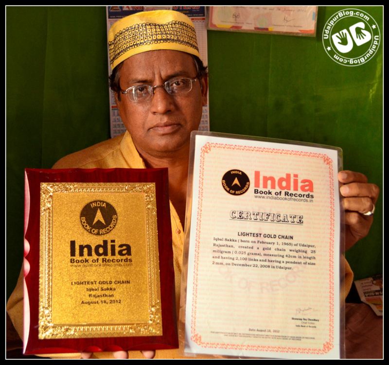 A. When I was young, I used to listen about people making different kinds of records. Seeing them, I’d always felt why not any Indian’s name appear in such news. My father used to do gold work. Inspired from these world record holders & to heighten our country’s name, I started making a thin gold chain. During 1985-88, I initiated with a 1 gram chain; got praised in the market; then of 800 mg, subsequently 600 mg & then a 100 milligram chain with dimensions 0.2mm & 0.5mm which got its place in the Guinness Book. Started with that, today, I have 22 world records.