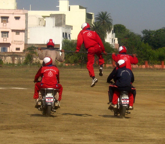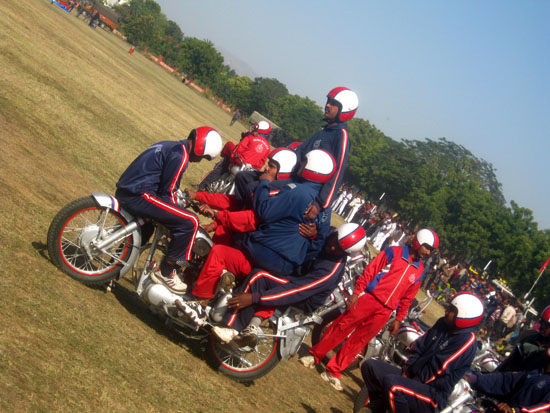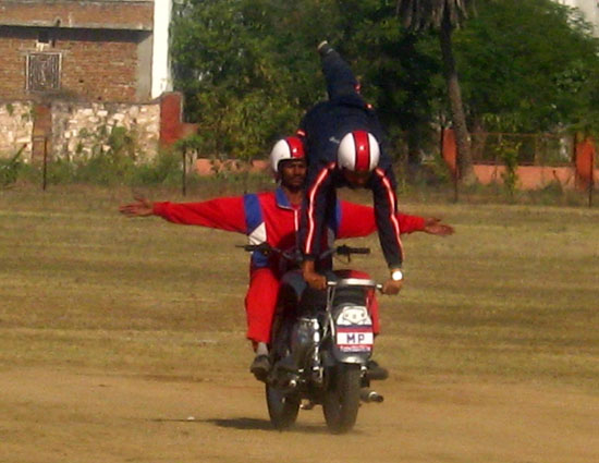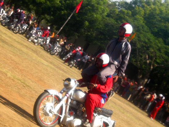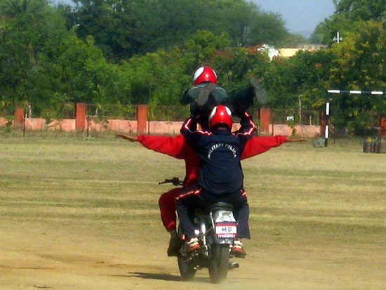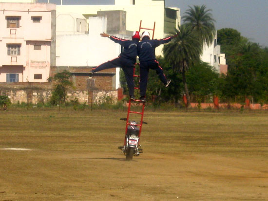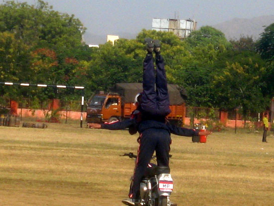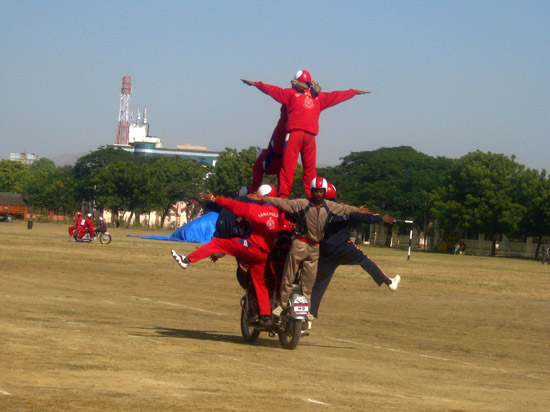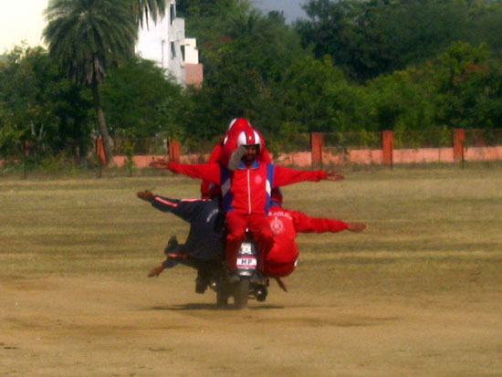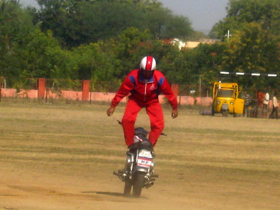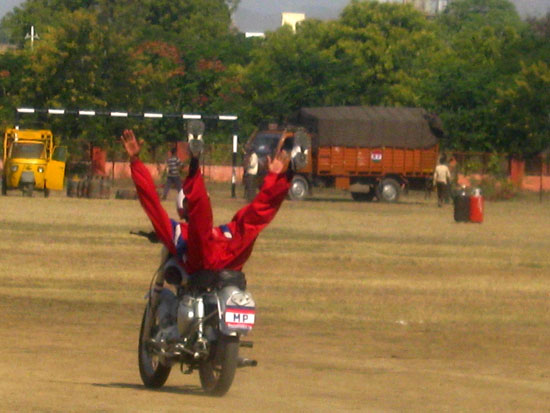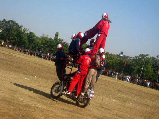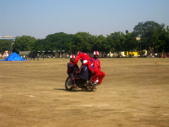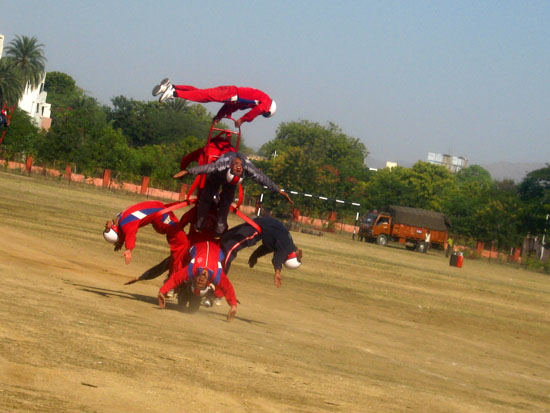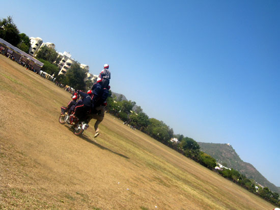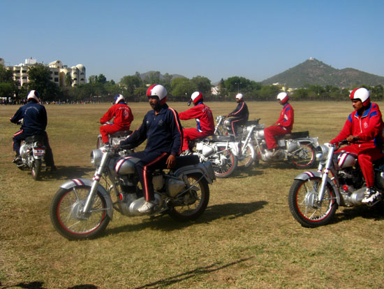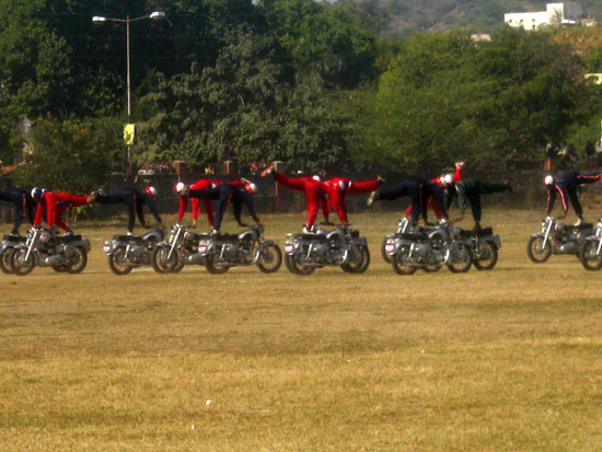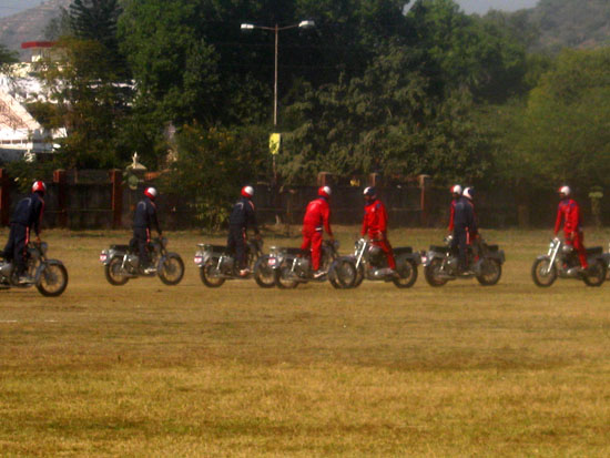 On 15th of January 2010, Udaipur witnessed an amazing and heart-throbbing event which took place at the Railway Training College Ground. The ground was full with crowd, and the city witnessed first of its kind bike stunt show by the Indian Daredevils on account of celebration for the National Youth Festival. Every witness wowed on every move of our Indian Army men who were just doing miracles on their bullet motorbikes.