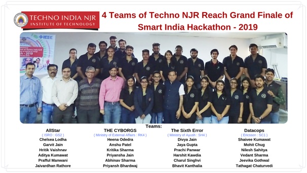 Techno NJR will see the arrival of 20 teams consisting of 120+ students and mentors arriving at their campus on 1stMarch to dive into the hackathon Session on 2nd March. Along with that, four teams of Techno India NJR are also shortlisted for SIH 2019 and will be departing to Kanpur, Jamshedpur, and Ahmedabad for the same.