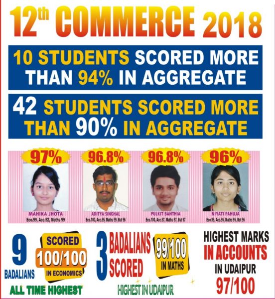 Udaipur’s popular Badala Classes is one of the best institutes for Commerce Education in the whole city and this has been proved from time to time. Badala Classes has created more than a thousand professionals in its past and still continues to do so.